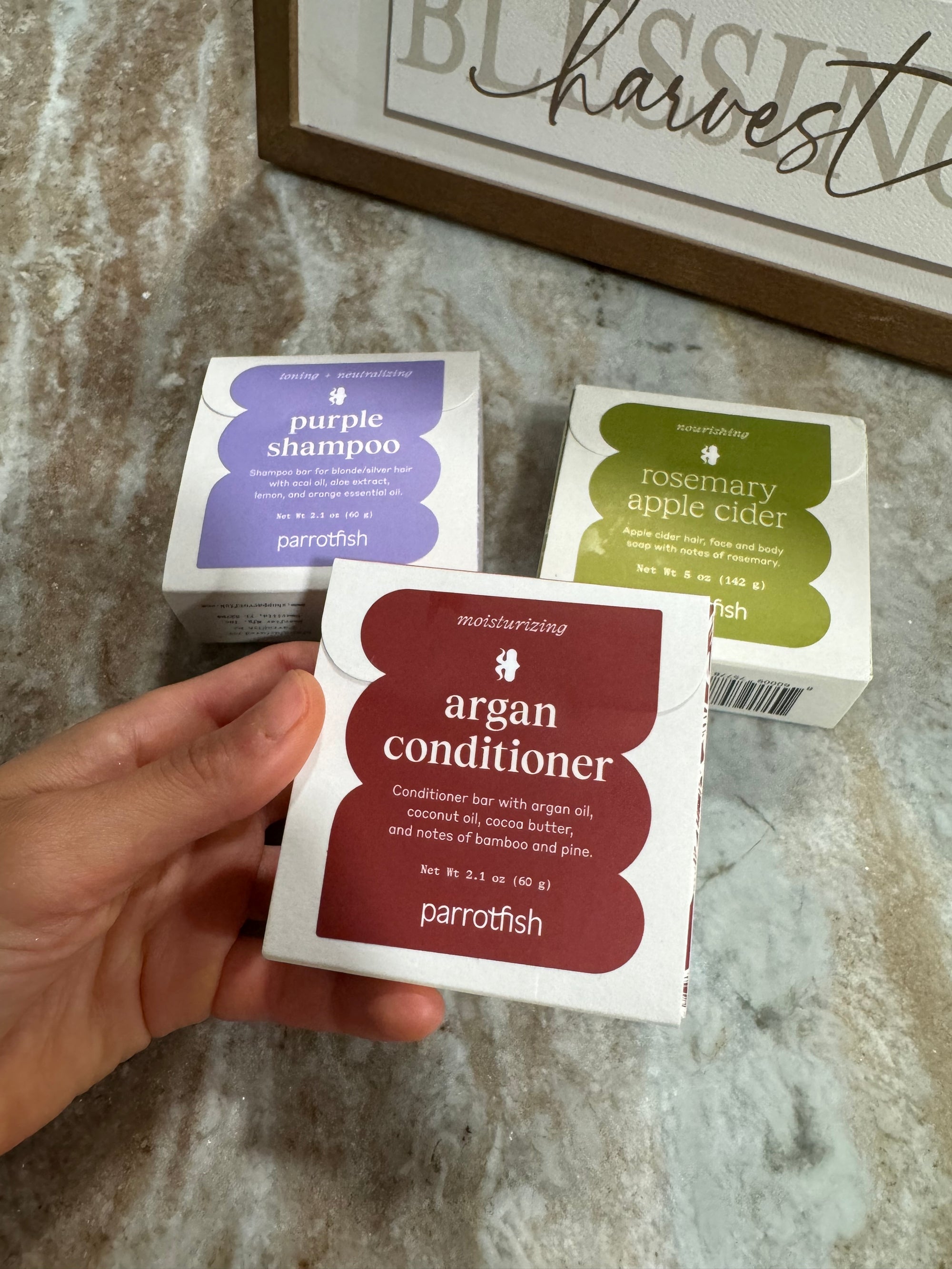 Typical liquid conditioners are comprised of 95% water. Our solid argan oil conditioner bar outlasts three 12 fl. oz. liquid conditioner bottles by eliminating unnecessary water. Moreover, Parrotfish employs packaging made from 95% post-consumer material and 5% post-industrial material, ensuring that our boxes are fully recyclable and biodegradable.
