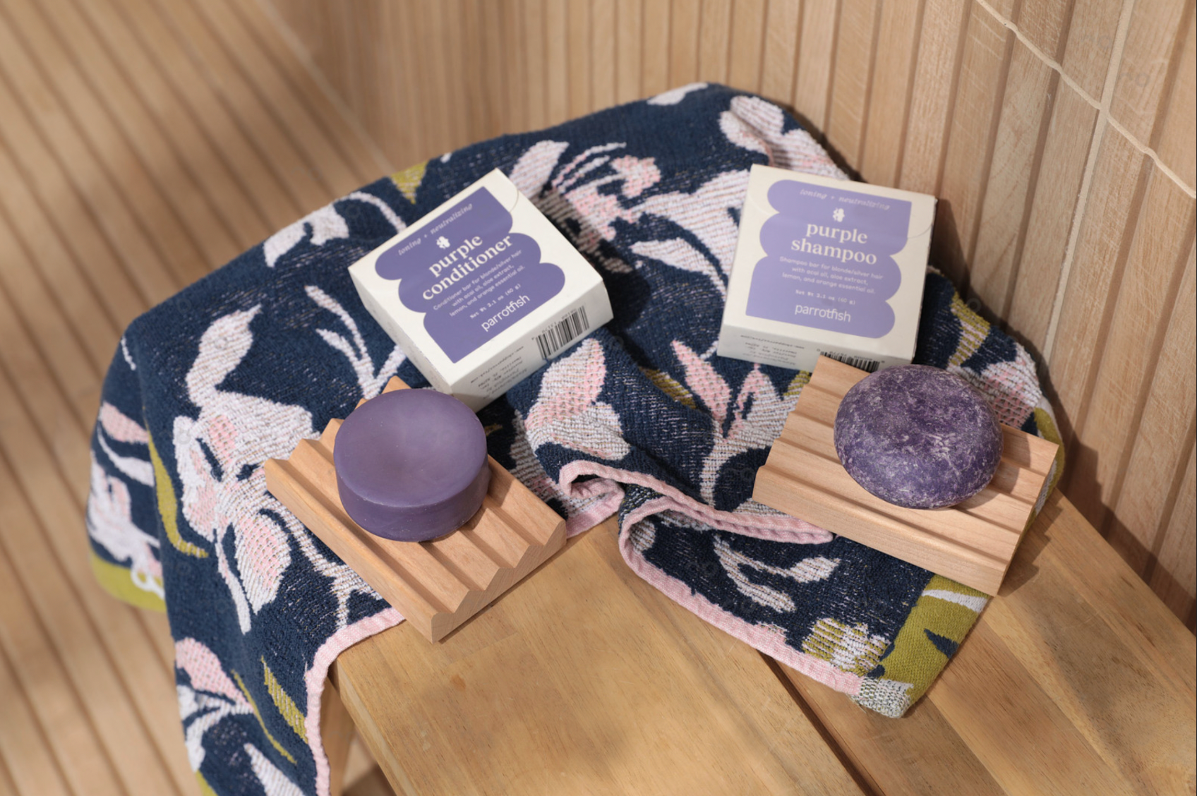 Each purple shampoo bar is meticulously encased in a bamboo holder for its protection during transit. It's crucial to remember, however, that this bamboo holder is not designed to serve as a soap dish. For the preservation and extended use of your shampoo bar, investing in an appropriate soap dish is vital. An ideal soap dish should raise the bar off its surface, allowing for proper air circulation and the draining away of any residual water. By adopting this practice, you can significantly enhance the durability of your purple shampoo bar, with it lasting anywhere between four to six months.